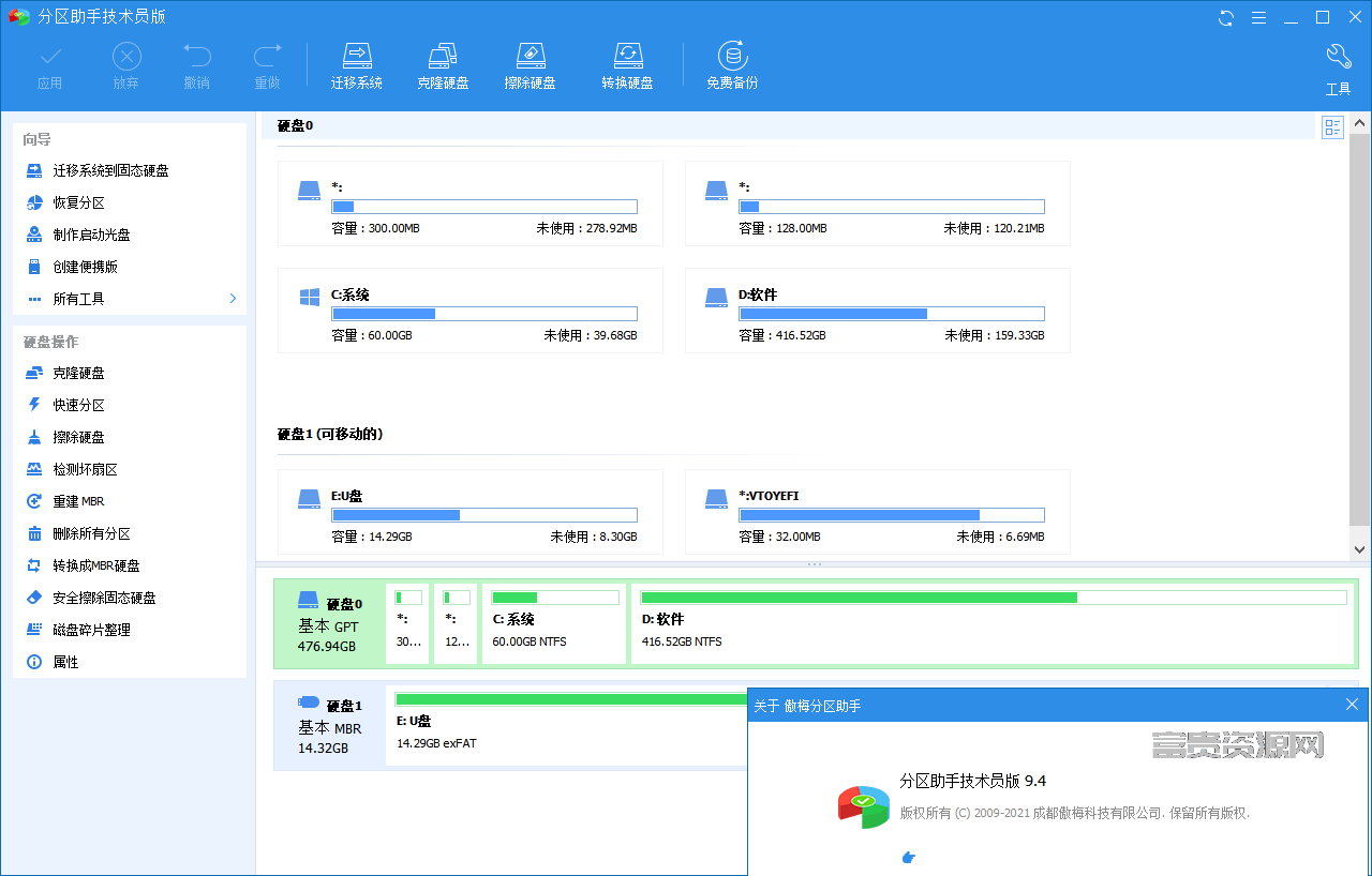 AOMEI分区助手:免费磁盘分区工具,分区魔术师替代者。傲梅分区助手是磁盘分区的后起之秀,是分区魔术师的替代者 ,也是一款国产的免费分区工具 。也是免费的备份还原软件,一键Ghost系统的替代者,您可以使用轻松备份。无损数据分区、调整分区大小 、分区复制、分区扩容、克隆与系统迁移 – 尽在分区助手!