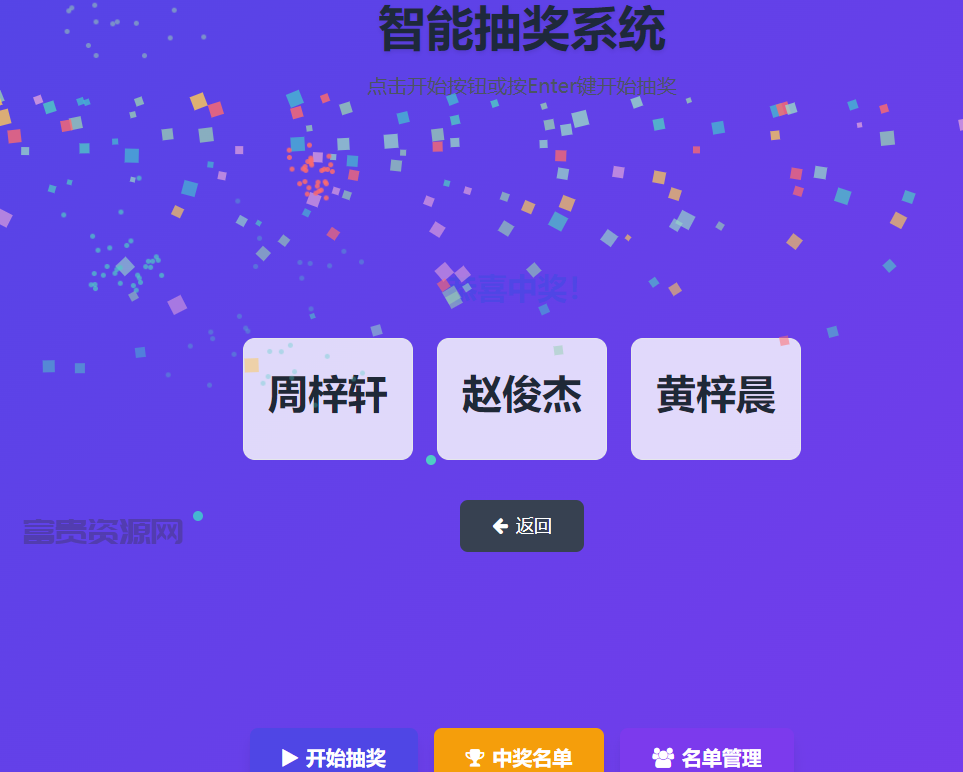 本智能抽奖系统是一个功能齐全 、界面美观的抽奖工具 ,支持多种抽奖模式和自定义设置,特别包含了隐藏的领导必中功能。系统采用现代UI设计,响应式布局 ,确保在各种屏幕尺寸下都能完美展示 。