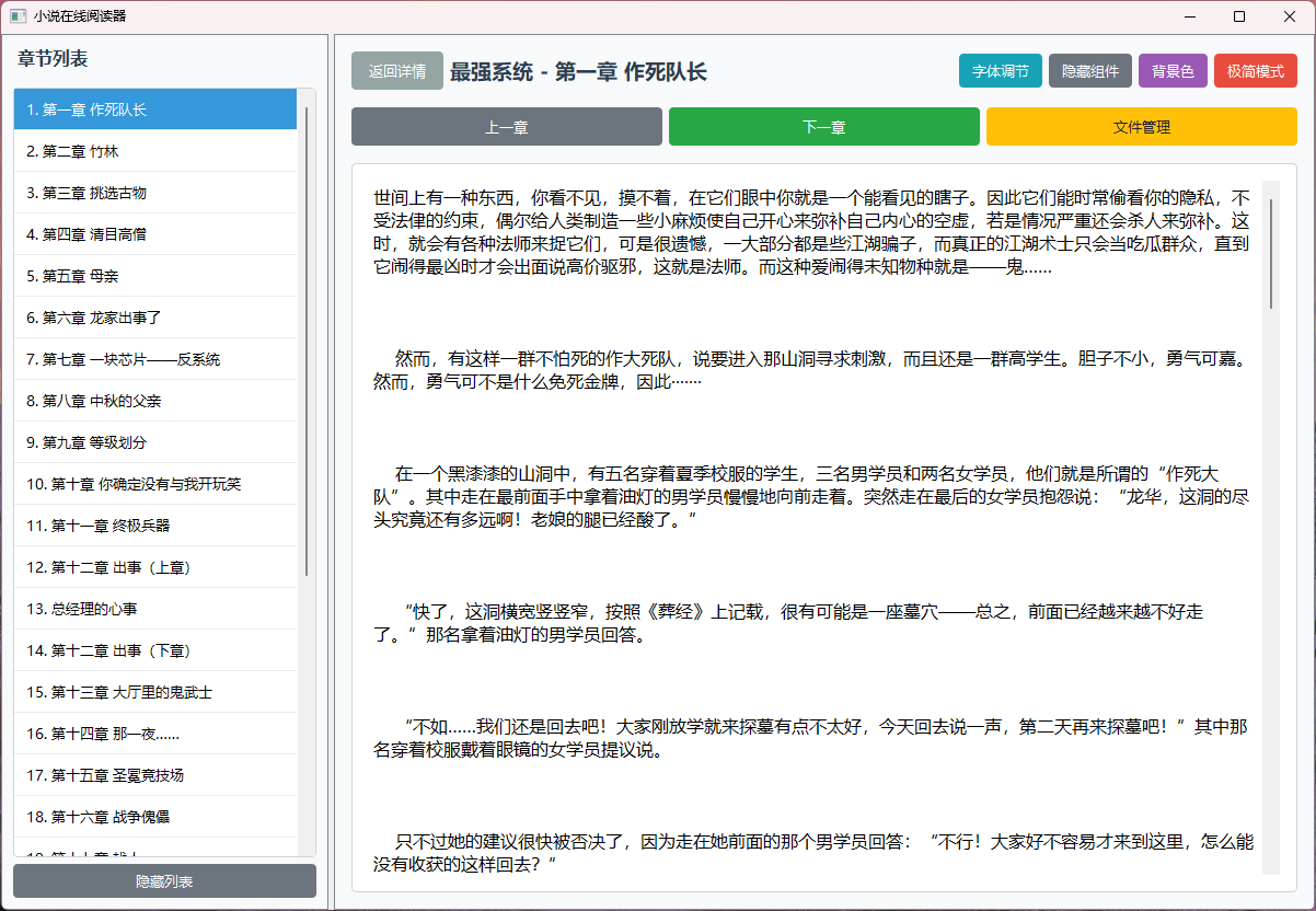章节列表与导航选定小说后 ,应用会自动获取并展示清晰的章节列表。每个章节都支持点击跳转,方便快速定位到想阅读的内容。这一设计避免了传统阅读器需要手动查找章节的麻烦 。
